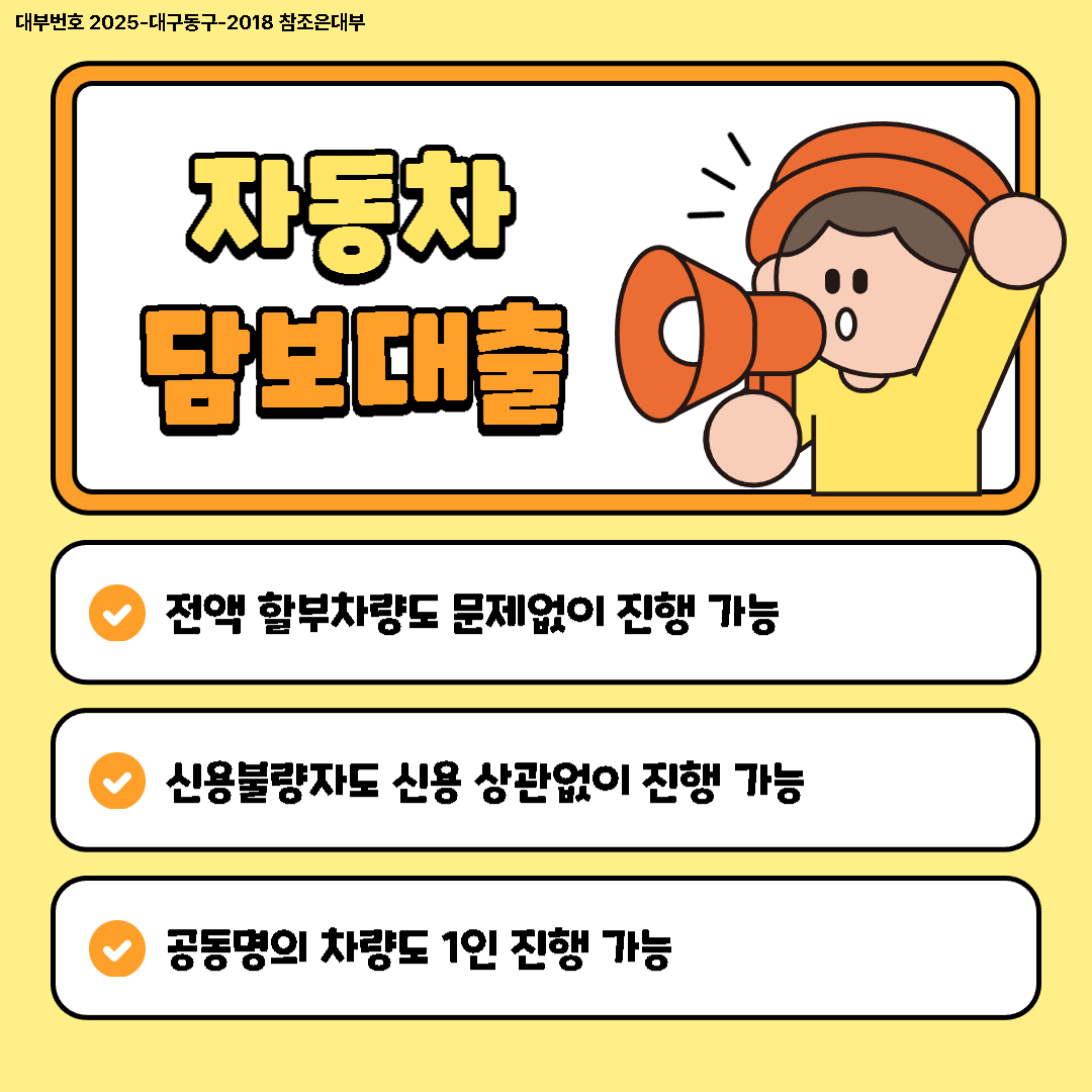 오늘의 포스팅을 살펴보며 안양자동차담보대출의 간편한 절차와 공동명의 차량을 1인 진행하는 방법 알아봤습니다.